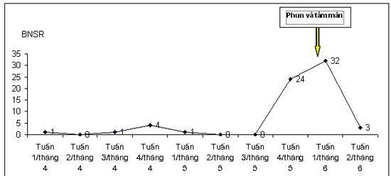 Đồ thị diễn biến BNSR theo các tuần trong tháng 4 và tháng 5 năm 2011 |