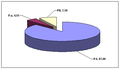 Phân tích 66 ký sinh trùng sốt rét tại xã Bình Thạnh cho thấy P.falciparum chiếm ưu thế với tỷ lệ 87,88%, P.vivax chiếm tỷ lệ 4,55% vàphối hợp chiếm tỷ lệ 7,58%, Tỷ lệ giao bào chiểm 28,79% trong tổng số ký sinh trùng.