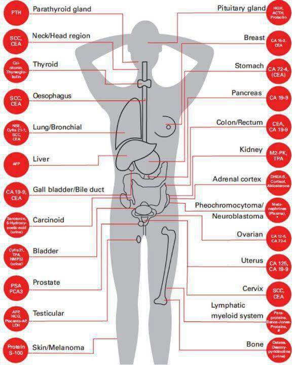 -Xác định cơ quan có khối u: PSA hoặc PAP tăng cao trong bệnh u tuyến tiền liệt, thyroglobulin tăng cao trong ung thư tuyến giáp, sau phẩu thuật cắt tuyến giáp nếu thyroglobulin tăng trở lại chứng tỏ bệnh tiến triển;
