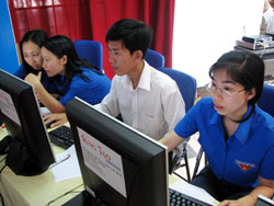 | Các bạn thanh niên gửi câu hỏi qua internet |