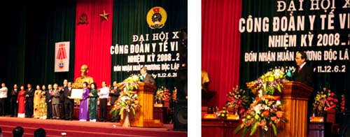 Sau báo cáo tổng kết, Đại hội vinh dự được Phó thủ tướng Chính phủ Nguyễn Thiện Nhân trao tặng cho tập thể Công đoàn Y tế Việt Nam: “Huân chương Độc lập hạng nhất” và cá nhân PGS.TS Vũ Thị Phương, Chủ tịch công đoàn Y tế Việt Nam Huân chương Lao động hạng III; 3 cá nhân được tặng Bằng khen của Thủ tướng Chính phủ cho các đồng chí Phạm Văn Minh, Phạm Thị Luyên, Phạm Văn Hạp. Phát biểu với Đại hội, Phó thủ tướng đánh giá cao sự đóng góp của ngành y tế với sự nghiệp chăm sóc và bảo vệ sức khoẻ nhân dân; đề nghị ngành tiếp tục thực hiện tốt nhiệm vụ mà Đảng và Nhà nước giao cho, hưởng ứng và tham gia sôi nổi cuộc phát động thi đua toàn quốc 11/6/2008.