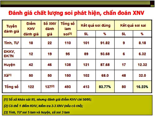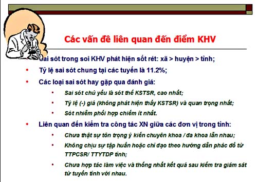 -Phần lớn các điểm KHV hoạt động thường xuyên và đồng bộ. Ưu điểm lớn tại các tuyến về kiểm tra công tác soi lam kiểm tra cho phản hồi sớm từ tuyến tỉnh à huyện à xã nên sẽ điều chỉnh kịp thời về chuyên môn, tỷ lệ sai sót xã so với tuyến trên không đáng kể;
