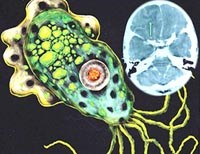 Gần đây một số trường hợp viêm màng não-não gây tử vong vì nhiễm loại amíp sống tự do ở môi trường bất thường ký sinh gây bệnh đã xuất hiện tại nước ta. Nguyên nhân chính do amíp xâm nhập vào cơ thể qua đường mũi, họng từ nguồn nước nhiễm bẩn khi bị sặc nước trong lúc tắm và bơi lội. Mặc dù bệnh hiếm gặp nhưng không phải là không có, vì vậy cần chú ý đề phòng khi tắm và bôi lội ở ao hồ, sông suối, bể bơi dễ có nguy cơ nhiễm.