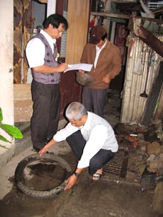 Đoàn công tác đi từng nhà, từng hộ gia đình nơi khu nhà trọ của sinh viên học sinh, kiểm tra công tác vệ sinh môi trường, diệt bọ gậy, và biện pháp phòng chống muỗi đốt gây bệnh sốt xuất huyết. Qua kiểm tra thực tế 10 hộ gia đình nhà ở có cấu trúc khác nhau, nhà trệt, nhà cao tầng, nhà có vườn nhiều cây cảnh, nhà tập thể ở hoặc cho thuê làm văn phòng thấy 8 hộ gia đình có bọ gậy chiếm 80%, 3 hộ gia đình có muỗi chiếm 30%, mật độ muỗi 0,7 con/nhà và chỉ số vectơ truyền bệnh sốt xuất huyết vượt quá cao so với ngưỡng báo dịch.