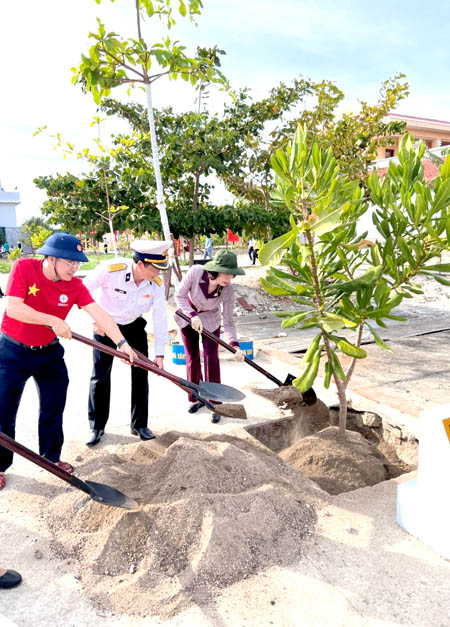 Hậu cần Quân chủng Hải Quân trồng cây lưu niệm đoàn công tác số 14 tại đảo ĐáTây A