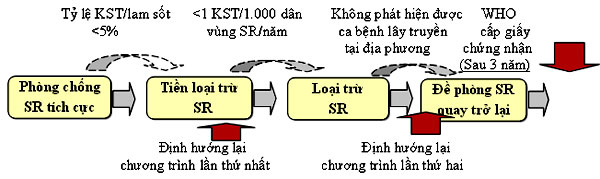 Cùng với đó, các hoạt động hướng tới mục tiêu loại trừ sốt rét đã được khởi động với hoạt động đầu tiên là xem xét áp các tiêu chuẩn loại trừ sốt rét tại địa phương qua kết quả điều tra 30 huyện trọng điểm thuộc 7 vùng kinh tế trên cả nước (sắp được thực hiện) và kết quả phân vùng dịch tễ sốt rét thự hành năm 2014 (đã ban hành). Trước hết là tiến hành thí điểm ở một số địa phương đạt chỉ tiêu giảm lan truyền của WHO: miền Bắc (Hòa Bình) và miền Trung (Thừa Thiên-Huế), sau khi có kết quả từ mô hình các huyện sẽ xây dựng tiêu chí loại trừ theo quy định của WHO trình Bộ Y tế phê duyệt và sẽ xem xét công nhận các tỉnh đạt chuẩn. Sau khi được công nhận loại trừ tiếp tục duy trì giám sát chủ động, duy trì phòng chống vector và duy trì kinh phí hoạt động, thậm chí còn cao hơn loại trừ sốt rét. Một số mô hình loại trừ sốt rét ở Sơ-ri-lan-ca, Trung Quốc cũng đã đạt được những thành công nhất định từ cơ sở này do đó duy trì chiến lược PCSR đến 2030 và tiến tới loại trừ sốt rét không lo bị cắt giảm kinh phí nên các tỉnh nên áp thử tiêu chuẩn khả năng thực tế tại địa phương mình để đặt mục tiêu phấn đấu.