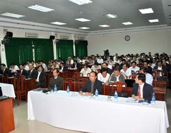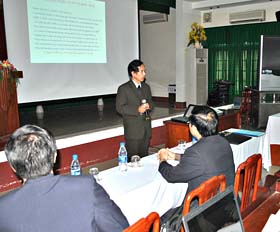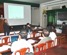 PGS.TS. Triệu Nguyên Trung-Viện trưởng trình bày báo cáo tổng quan về những khó khăn thách thức trong phòng chống sốt rét, các bệnh ký sinh trùng, côn trùng 2005-2010 khu vực miền Trung-Tây Nguyên | TS. Nguyễn Văn Chương-Phó Viện trưởng trình bày các bệnh giun sán mới nổi và yêu cầu cần thiết phải có chương trình phòng chống bệnh giun sán ở khu vực miền Trung-Tây Nguyên |