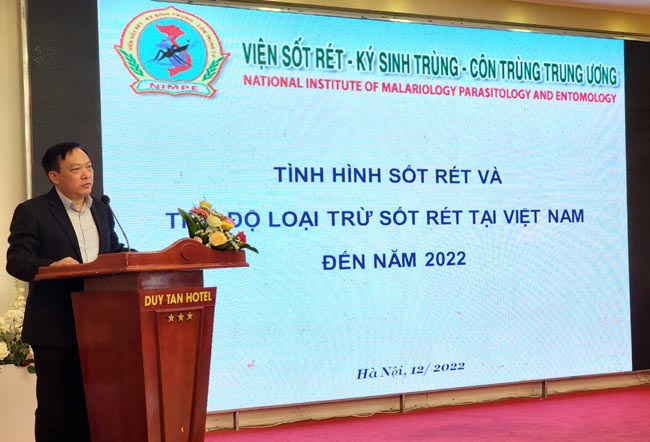 TS.BS. Hoàng Đình Cảnh-Viện trưởng Viện Sốt rét-KST-CT Trung ương báo cáo đánh giá kết quả PC & LTSR tại Việt Nam năm 2022