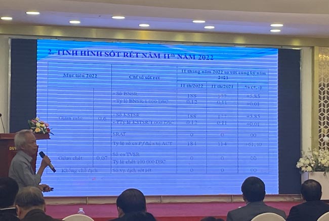 Trong báo cáo đánh giá kết quả PC & LTSR khu vực MT-TN năm 2022 tại Hội nghị, PGS.TS. Hồ Văn Hoàng cho biết khu vực MT-TN luôn được xem là khu vực trọng điểm sốt rét của cả nước. Dù đối mặt với nhiều khó khăn, thách thức nhưng kết quả phòng, chống và loại trừ sốt rét của khu vực đã được những kết quả đáng ghi nhận. Cụ thể, số trường hợp mắc sốt rét được phát hiện trong 11 tháng đầu năm 2022 giảm 17 ca (5,78%) so với cùng kỳ năm 2021 và không có trường hợp sốt rét ác tính hay xảy ra tử vong.