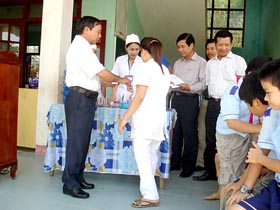 TS Nguyễn Văn Chương, Phó Viện trưởng Viện Sốt rét-KST-CT Quy Nhơn cùng lãnh đạo Trung tâm PCSR- Bướu cổ tỉnh Quảng Bình kiểm tra uống thuốc tại huyện Tuyên Hoá |