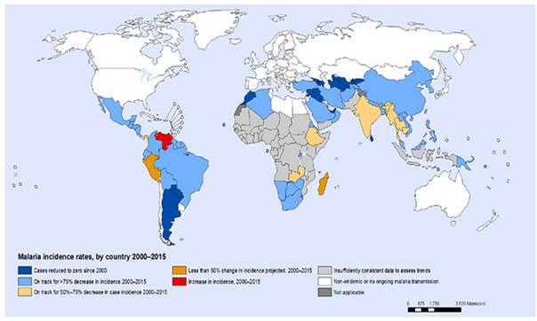 Hình 1.Tình hình sốt rét trên phạm vi toàn cầu. Nguồn: WHO, 2016