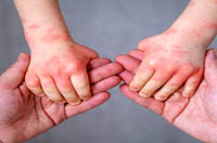 Hình 3. Một số tình trạng viêm da tiếp xúc và mày đay hay côn trùng đốt hay gặp trên lâm sàng