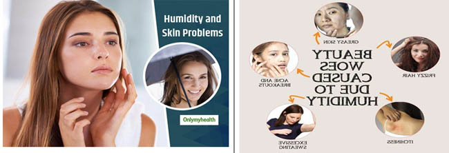 Khi thời tiết trở nên thay đổi ẩm hơn, điều đó có nghĩa là tăng độ ẩm trong không khí. Điều đó gây ra tình trạng các lỗ chân lông trên da mở ra và tạo ra cho da dễ nhạy cảm với các chất bẩn, dầu nhớt và chất dị nguyên. Độ ẩm quá cao có thể gây ra các vấn đề như mụn trứng cá, viêm da, nứt da, chàm da và phản ứng dị ứng trên da con người.