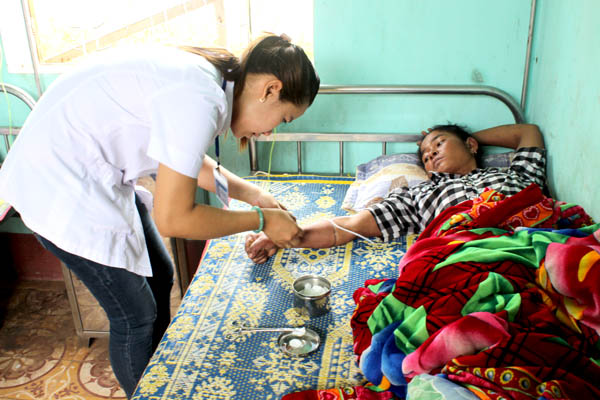 Nhân viên y tế xã Thanh- huyện Hướng Hóa lấy máu xét nghiệm cho bênh nhân bị sốt rét