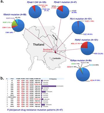 Liệu pháp điều trị thuốc phối hợp có thành phần artemisinin/ hay dẫn suất là phương pháp điều trị chính cho bệnh sốt rét do P. falciparum trên toàn cầu, nhưng artemisinin đã bị kháng thông qua bằng chứng là sự trì hoãn hay chậm làm sạch ký sinh trùng sốt rét (KSTSR) sau khi điều trị liệu pháp artemisinin (ACTs), hiện đã lan rộng và phổ biến trên một khu vực rộng lớn ở nhiều quốc gia Đông Nam châu Á. Kháng artemisinin đặc trưng bởi sự giảm tính nhạy của các thể tư dưỡng non trong quá trình phát triển của ký sinh trùng và rõ ràng là có liên quan tới tăng tỷ lệ thất bại (treatment failure rate) trong phương pháp điều trị kết hợp có thành phần artemisinin ở khu vực biên giới Campuchia và Thái Lan. Đột biến có thay đổi trình tự các acide amin chủ yếu và được gọi là vùng cánh quạt (propeller) của các protein Kelch chứa gen K13, đã được xác định là một yếu tố chính quyết định gây ra kháng artemisinin ở Đông Nam Á, hoạt động thông qua tăng điều hòa và tạo ra phản ứng của protein. Các đột biến ở propeller K13 khác nhau được ghi nhận trong các nghiên cứu khảo sát ở cộng đồng dân cư trong khu vực và các kiểu hình với số lượng đủ để có ý nghĩa thống kê, các đột biến phổ biến hầu hết có liên quan đến trì quá trình chậm làm sạch KSTSR sau khi điều trị liệu pháp có artemisinin và giảm đáp ứng trên thử nghiệm in vitro. Xảy ra đột biến không thường xuyên ở vùng cánh quạt (propeller) và vẫn chưa xác định được là có liên quan tới tỷ lệ làm sạch ký sinh trùng bình thường. Các nghiên cứu dựa trên chứng cứ cho thấy bằng chứng số liệu ngày càng tăng ở các vùng cách xa khu vực xác định kháng artemisinin ban đầu, các đột biến K13 propeller không hiện diện ở những tần số đáng kể và tổng số tỷ lệ đột biến propeller K13 nhỏ hơn 5% từ một loạt nghiên cứu khảo sát nhiễm sốt rét đơn thuần P. falciparum. Khám phá và nghiên cứu các marker (chỉ điểm) phân tử kháng thuốc artemisinin trước khi nó lan rộng ra toàn cầu cung cấp một cơ hội duy nhất cho việc giám sát được thực hiện trong thời gian gần để hỗ trợ cho các chiến lược ngăn chặn và loại trừ sốt rét. Tổ chức Y tế thế giới (TCYTTG) đã kết hợp số liệu giám sát các chỉ điểm propeller K13 để điều chỉnh và cập nhật về định nghĩa của kháng artemisinins. Kháng artemisinins ở P. falciparum đã xuất hiện tại biên giới Myanmar-Thái Lan trong nhiều năm và chậm làm sạch ký sinh trùng sau khi điều trị kết hợp artemisinin (ACTs) cũng được ghi nhận ở đông nam Myanmar. Nghiên cứu này trình bày một khảo sát chi tiết phân tử K13 của P. falciparum phân lập được từ các bệnh nhân ở Myanmar và các vùng lân cận đó. Các nghiên cứu được thiết kế và thu thập mẫu cho kiểu gen K13 từ bệnh nhân có biểu hiện triệu chứng sốt rét từ các trung tâm điều trị tại 55 điểm nghiên cứu trong mười khu vực hành chính ở Myanmar và hai khu vực xuyên biên giới Thái Lan và Bangladesh. Bệnh nhân mắc sốt rét do P. falciparum xác định bằng xét nghiệm lam máu nhuộm giêm sa hoặc xét nghiệm chẩn đoán nhanh (RDTs). Trong một nhóm nhỏ của những bệnh nhân này, cả hai sàng lọc chẩn đoán nhanh và toàn bộ mẫu máu được xử lý để kiểm tra sự phù hợp. Các thành phần DNA được tách chiết từ những giọt máu khô thu thập vào mẫu giấy thấm, hay que thử chẩn đoán nhanh (cả hai được lưu trữ và làm khô tại nhiệt độ phòng) và các mẫu máu còn nguyên vẹn đông lạnh bằng phương pháp và quy trình chuẩn. Các cặp mồi (primers) phù hợp có nguồn gốc từ chuỗi gen K13 được sử dụng để khuếch đại Kelch 13 đủ để đọc khung mở với việc áp dụng một quy trình kỹ thuật Nested PCR để mô tả trình tự hoàn chỉnh từ acid amin 210 trở đi (phần bảo tồn của các protein) và coi những kết quả dị hợp tử là đột biến.