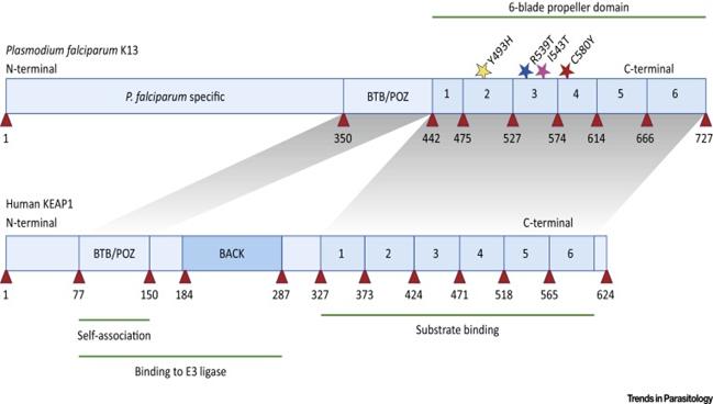 Kháng artemisinin đã được phát hiện ở phía tây Campuchia hơn một thập kỷ trước. Các nghiên cứu về quần thể di truyền học đã mô tả quần thể P. falciparum với sự biến đổi gen tạo nguy cơ tiềm ẩn lan truyền tăng lên mức khá cao, mỗi quần thể được liên kết với các đột biến K13 cụ thể và có mức độ kháng artemisinin cao cả trên in vivo và in vitro. Bảy đột biến riêng biệt dường như đã phát sinh độc lập nhiều hơn một lần tại các vị trí khác nhau, những đột biến bao gồm C580Y, được định hình và lan rộng đến các khu vực khác. Trong nghiên cứu này, các tác giả cũng tìm thấy ký sinh trùng có đột biến C580Y duy nhất ở biên giới Myanmar-Thái Lan, mặc dù dòng/ chủng này dường như được tách ra từ dòng/ chủng ở Campuchia. Rất ít các đột biến K13 ở Myanmar hiện nay được báo cáo có tỷ lệ cao ở Campuchia. Hơn nữa, các đột biến ở Myanmar dường như thuộc nhóm hướng về vùng Kelch đầu tiên (acid amin 441-475) với một đột biến trong vùng thân được bảo tồn của protein (E252Q) cũng chiếm tần suất đáng kể ở phía đông nam Myanmar. Ở phía bắc Myanmar, kể cả vùng rất gần biên giới Ấn Độ, tỷ lệ F446I đột biến rất cao. Tại sao có những dạng khác nhau của các đột biến tại các vị trí khác nhau là chưa rõ ràng, có thể giải thích có thể là Myanmar ở giai đoạn sớm của một quá trình tiến hóa hơn so với Campuchia trên quần thể ký sinh trùng. Việc lan rộng đột biến ở Myanmar ở một mức độ giảm của kháng artemisinin (mặc dù đột biến P574L lan rộng dường như gắn với sự làm sạch KSTSR mà ít nhất là làm chậm sạch như đột biến C580Y) hoặc có thể có một giá trị vừa phải, để chúng cạnh tranh bằng lựa chọn thay thế phù hợp theo thời gian như C580Y. Ngoài ra, có thể có áp lực chọn lọc thuốc đặc biệt do sử dụng thuốc chống sốt rét khác nhau trong vùng rộng lớn và thời gian kéo dài, di truyền của vật chủ, hoặc đặc tính sinh học của muỗi thúc đẩy sự khác biệt các đột biến ở hai khu vực. Cần những nghiên cứu phù hợp sâu hơn về ký sinh trùng, độ nhạy cảm trên các thử nghiệm in vitro của thuốc có khả năng làm sáng tỏ những vần đề này.