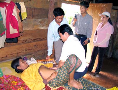 TS. Hồ Văn Hoàng-Phó Viện trưởng Viện Sốt rét - KST-CT Quy Nhơn khám bệnh cho bệnh nhân sốt rét tại địa phương |