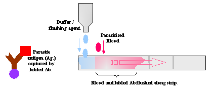 Bước đầu tiên của quy trình thực hiện liên quan trộn máu bệnh nhân với một chất đang ly giải trong que thử hoặc trên giếng thử. Điều này phù hợp với các tế bào hồng cầu, ly giải nhiều protein hơn. Kháng thể đánh dấu, hoặc ở trong giếng hoặc trên que nhúng có thể gắn với protein đích (kháng nguyên).