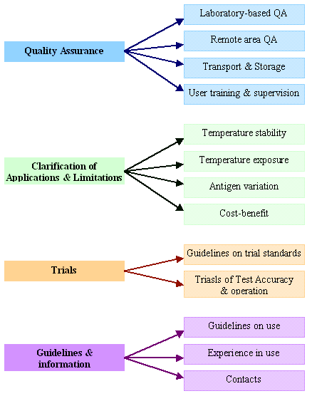 Các công việc này chủ yếu được phát triển để giúp đỡ các nhân viên y tế cộng đồng sử dụng test chẩn đoán nhanh đúng và hợp lý. Tổ chức Y tế thế giới (TCYTTG) và các đối tác của họ vẫn đang làm việc với nhau để cải thiện các thiết kế test. Ngay cả khi các hướng dẫn bạn đã rõ ràng và hiểu hết, các nghiên cứu cũng đã chỉ ra một sư hỗ trợ công việc cũng chưa chắc đảm bảo cho các kết quả tốt nhất. Người sử dụng cần phải đào tạo thêm.