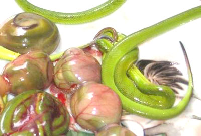 | Rắn lục đuôi đỏ đẻ con và sinh sản rất nhanh. |