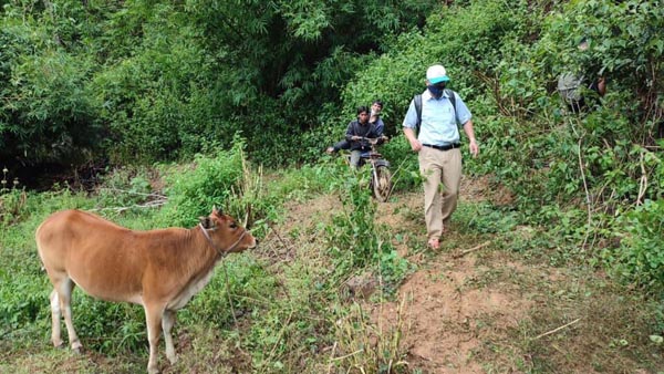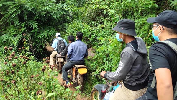 TS.BS. Huỳnh Hồng Quang cùng đoàn công tác trên đường đến điều tra nhà đầm nhà rẫy, cách khu vực nhà dân khoảng 20 km đường rừng