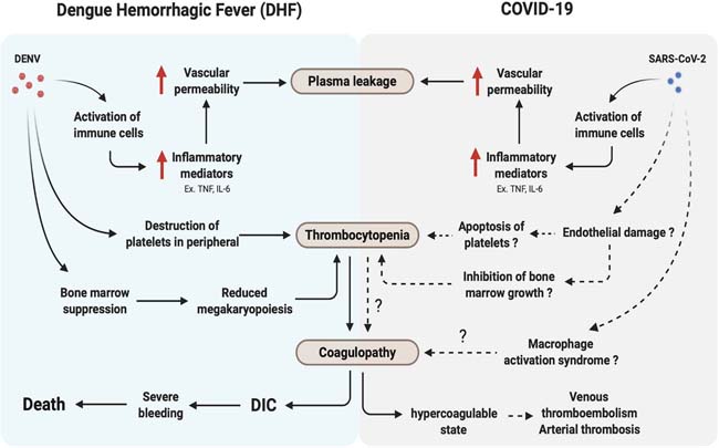 Hình 2. Cơ chế bệnh sinh của bệnh Sốt xuất huyết và bệnh COVID-19