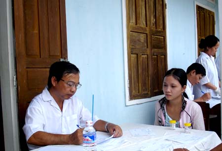 TS. Nguyễn Văn Chương phỏng vấn người dân tại địa phương về kiến thức phòng chống giun sán |