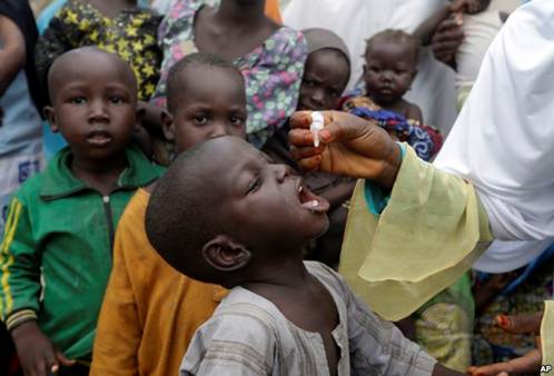 Một nhân viên y tế cho trẻ uống vaccine bại liệt