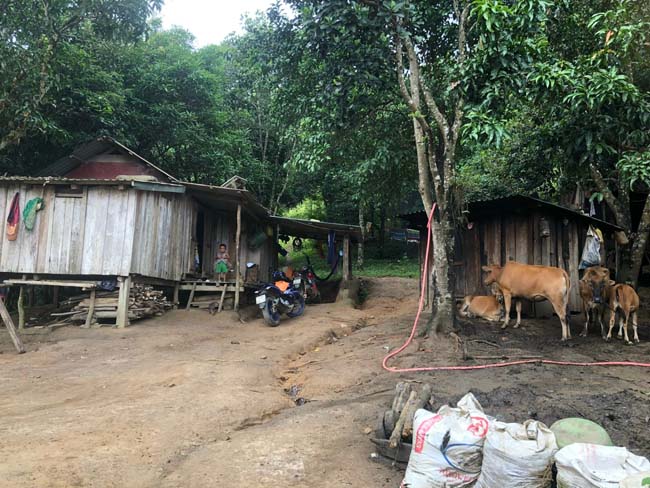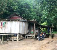 Bên ngoài nhà ở của một trong những bệnh nhân sốt rét tại xã Hướng Linh