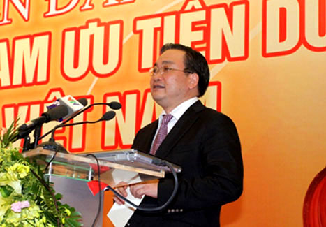 Phó Thủ tướng Hoàng Trung Hải mong muốn ngành dược Việt Nam từng bước đảm bảo đủ thuốc phòng, chữa bệnh cho nhân dân, bớt dần sự lệ thuộc vào nước ngoài. (ảnh: Chinhphu.vn) |