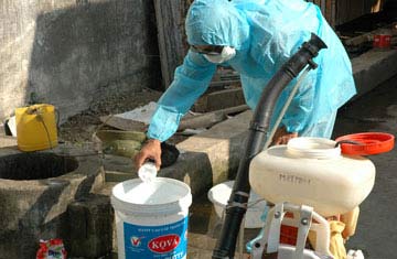 Các nhân viên y tế đang khử trùng các nguồn nước bị ô nhiễm |