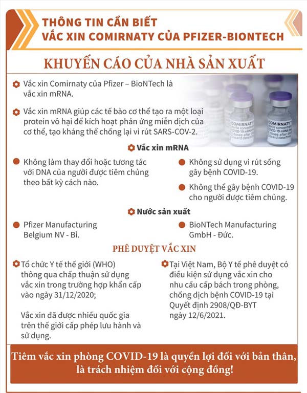do Pfizer-BioNTech của Hoa Kỳ sản xuất, đã được Tổ chức Y tế thế giới khuyến cáo tiêm chủng cho