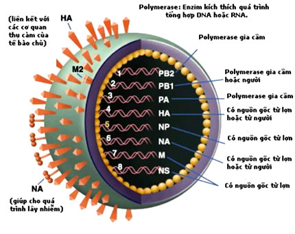 | Sơ đồ phân tử virus cúm A (H7N9) |