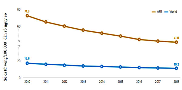 trên toàn cầu và khu vực WHO châu Phi, giai đoạn 2010-2018 (AFR: châu Phi; World: thế giới). Nguồn: WHO