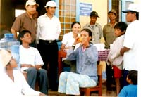 Công tác truyền thông giáo dục sức khoẻ phòng chống dịch bệnh (trong ảnh: TS Nguyễn Văn Chương(áo nâu)-Phó Viện Trưởng Viện Sốt rét KST-CT Quy Nhơn trong đợt tuyên truyền phòng chống các loại giun truyền qua đất) |