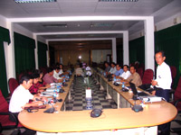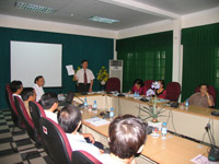 Làm việc với Lãnh đạo và các Trưởng/Phó khoa phòng của Viện, Đoàn đã nghe TS. Triệu Nguyên Trung-Viện trưởng báo cáo kết quả hoạt động của Viện về công tác tổ chức cán bộ và tình hình phòng chống sốt rét, các bệnh ký sinh trùng tại khu vực miền Trung-Tây Nguyên.  |