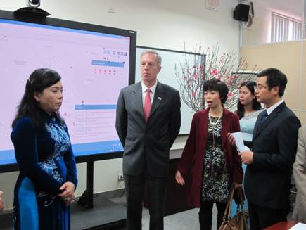 Đại sứ Hoa Kỳ và Bộ trưởng Y tế Việt Nam nghe báo cáo về hoạt động của Văn phòng EOC tại Việt Nam