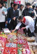 Đoàn kiểm tra liên ngành của Cục VSATTP và Sở Y t ế Hà Nội kiểm tra VSATTP trên thị trường. Ảnh: Pv |