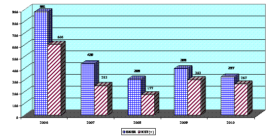 ( BNSR và KSTSR từ năm 2006-2010 liên tục giảm và duy trì ổn định) |