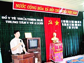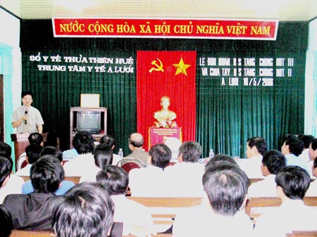 Lễ ra quân tăng cường bác sĩ về công tác cơ sở tại huyện A Lưới năm 2005 | PGS.TS. Nguyễn Dung, Giám đốc Sở Y tế giao nhiệm vụ cho các bác sĩ tăng cường |