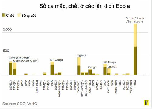 WHO cho biết số ca mắc và tử vong tiếp tục gia tăng tập trung chủ yếu ở khu vực Tây Phi như Guinea (1.519 ca mắc, 862 tử vong); Liberia (4.262 ca mắc, 2.484 tử vong); Sierra Leone (3.410 ca mắc, 1.200 tử vong); Cộng hòa dân chủ Congo (68 ca mắc, 49 tử vong). Hai quốc gia Nigeria: (20 ca mắc, 8 tử vong) và Senegal (1 ca mắc, 0 tử vong) đã qua trên 40 ngày không ghi nhận trường hợp mắc mới đang được WHO xem xét công bố thoát dịch. Theo đó WHO đã công bố thoát dịch cho Senegal do không có ca nhiễm mới trong vòng 42 ngày ngoài một trường hợp duy nhất nhiễm virus Ebola ở nước này đã hồi phục sức khỏe. Ngày 20/10/2014, WHO có thể công bố thoát dịch cho quốc gia tiếp theo là Nigeria với 20 trường hợp nhiễm bệnh và 8 ca tử vong do Ebola nhưng trên 40 ngày không ghi nhận ca mắc mới. Tuy nhiên số nhân viên y tế mắc bệnh ghi nhận 431 trường hợp, trong đó có 247 tử vong, theo đó Mỹ xác định 3 ca mắc Ebola (1 ca tử vong) có 2 nhân viên y tế và Tây Ban Nha xác định Eboal 1 ca Ebola là nhân viên y tế đang trong giai đoạn hồi phục.
