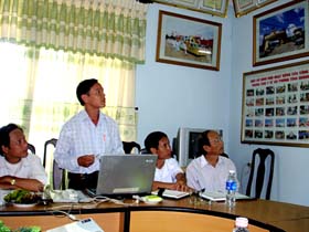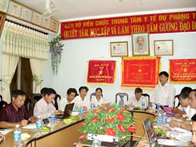 TS Nguyễn Văn Chương, Phó Viện trưởng Viện Sốt rét-KST-CT Quy Nhơn làm việc với Trung tâm Y tế dự phòng tỉnh Quảng Trị. |