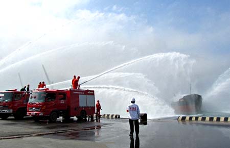 Diễn tập chữa cháy và cứu hộ các thuyền viên tàu chở dầu |