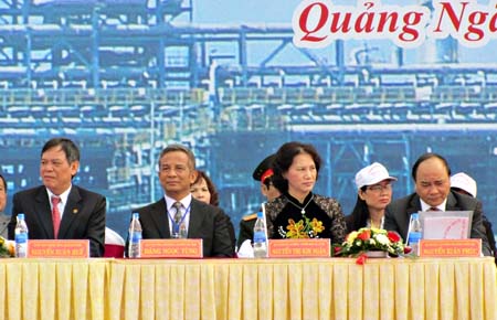 Từ phải sang trái: Ông Nguyễn Xuân Phúc, Bà Nguyễn Thị Kim Ngân, Ông Đặng Ngọc Tùng, Ông Nguyễn Xuân Huế - Chủ tich UBND Tỉnh Quảng Ngãi | Ông Hồ Nghĩa Dũng (áo màu sáng) và Ông Nguyễn Hoà Bình – Bí thư Tỉnh Quảng Ngãi |