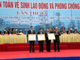 Ngày 20/3/2011, Tuần lễ quốc gia An toàn vệ sinh lao động và Phòng chống cháy nổ lần thứ 13 (năm 2011) với chủ đề “An toàn lao động vì hạnh phúc của gia đình và sự phát triển bền vững của doanh nghiệp” được phát động tại Cảng Dung Quất, tỉnh Quảng Ngãi