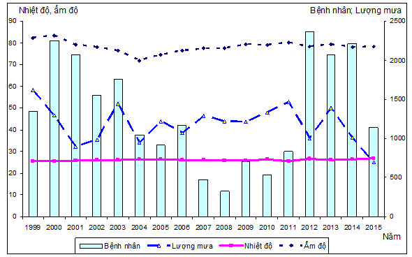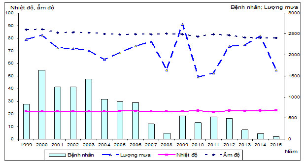Biểu đồ 3.1. Diễn biến các yếu tố thời tiết và bệnh sốt rét 1999-2015 ở Ia Grai