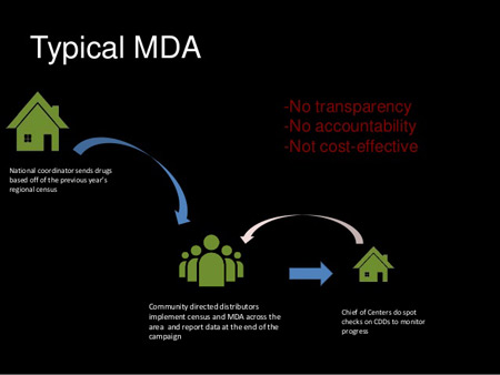9.TCYTTG hỗ trợ yêu cầu để nghiên cứu sâu hơn về các phương pháp tối ưu để thực hiện các chương trình chiến lược MDA, thúc đẩy sự tham gia của cộng đồng và thực hiện đúng quá trình điều trị, đánh giá hiệu quả của các chương trình đó. Công tác mô hình hóa có thể hướng dẫn thực hiện chiến lược MDA bằng các giải pháp hiệu quả nhất đối với các vùng dịch tễ khác nhau cũng như dự đoán những tác động xấu có thể xảy ra từ chương trình này.