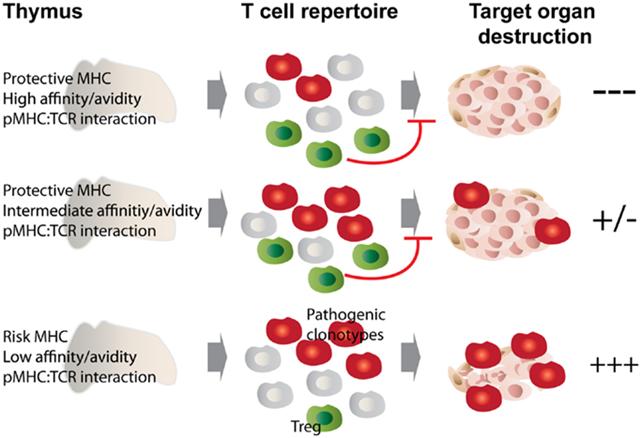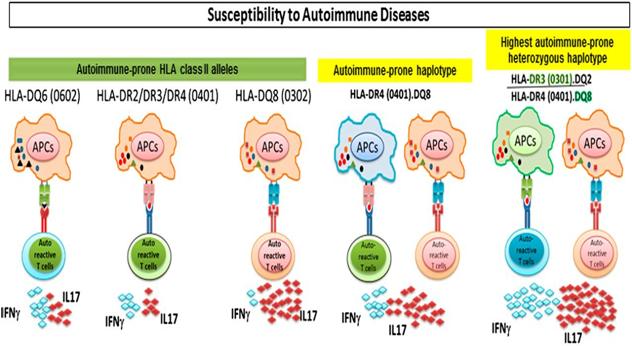 Nếu các phân tử MHC của cá thể này có hiệu quả trong việc trình diện kháng nguyên hơn các phân tử MHC của cá thể khác thì tạo tiền đề cho xuất hiện bệnh tự miễn. Do đó, bệnh Lupus ban đỏ hệ thống có thể xem như bệnh mạch máu hệ thống khởi động bởi phức hợp miễn dịch. Các thành phần tự kháng nguyên của phức hợp dẫn đến phản ứng tự miễn của type Th2 đối với các cấu trúc nucleosom do hiện tượng tự tiêu tế bào hàng loạt mang lại.