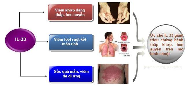 Hình 14.Vai trò của cytokine IL-33 trên một số bệnh tự miễn. Nguồn: TS. Nguyễn Đăng Quân