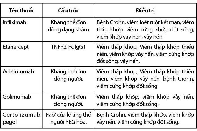 Một số thuốc ức chế TNF-α dùng trong điều trị được giới thiệu tại báo cáo chuyên đề “Xu hướng ứng dụng liệu pháp dược sinh học trong điều trị bệnh tự miễn”. Tuy nhiên, BRMs cũng có những mặt trái như: Tốn kém hơn so với phương pháp điều trị truyền thống, tác dụng phụ thường gặp nhất là đau và phát ban ở chỗ tiêm (30% bệnh nhân, theo thống kê của trang WebMD). Có khả năng gây ra các triệu chứng của phản ứng sốc phòng vệ như cúm, sốt, ớn lạnh, buồn nôn, và đau đầu do BRMs thường được truyền qua tĩnh mạch, vì vậy, bệnh nhân nên được theo dõi trong quá trình tiêm thuốc, có thể tạo điều kiện cho một số bệnh mãn tính (như bệnh lao) bùng phát. Tăng nguy cơ nhiễm trùng và các bệnh khác, giống như các loại thuốc ức chế hệ thống miễn dịch khác. Trước những lo ngại về tác dụng phụ của thuốc ức chế bệnh tự miễn, TS. Nguyễn Đăng Quân chia sẻ “Tuy BRMs cũng gây ra các tác dụng phụ trên người bệnh như gây ra sự suy giảm hệ miễn dịch ở người bệnh, nhưng những tác dụng phụ này nhẹ hơn nhiều so với thuốc hóa dược thế hệ cũ”.
